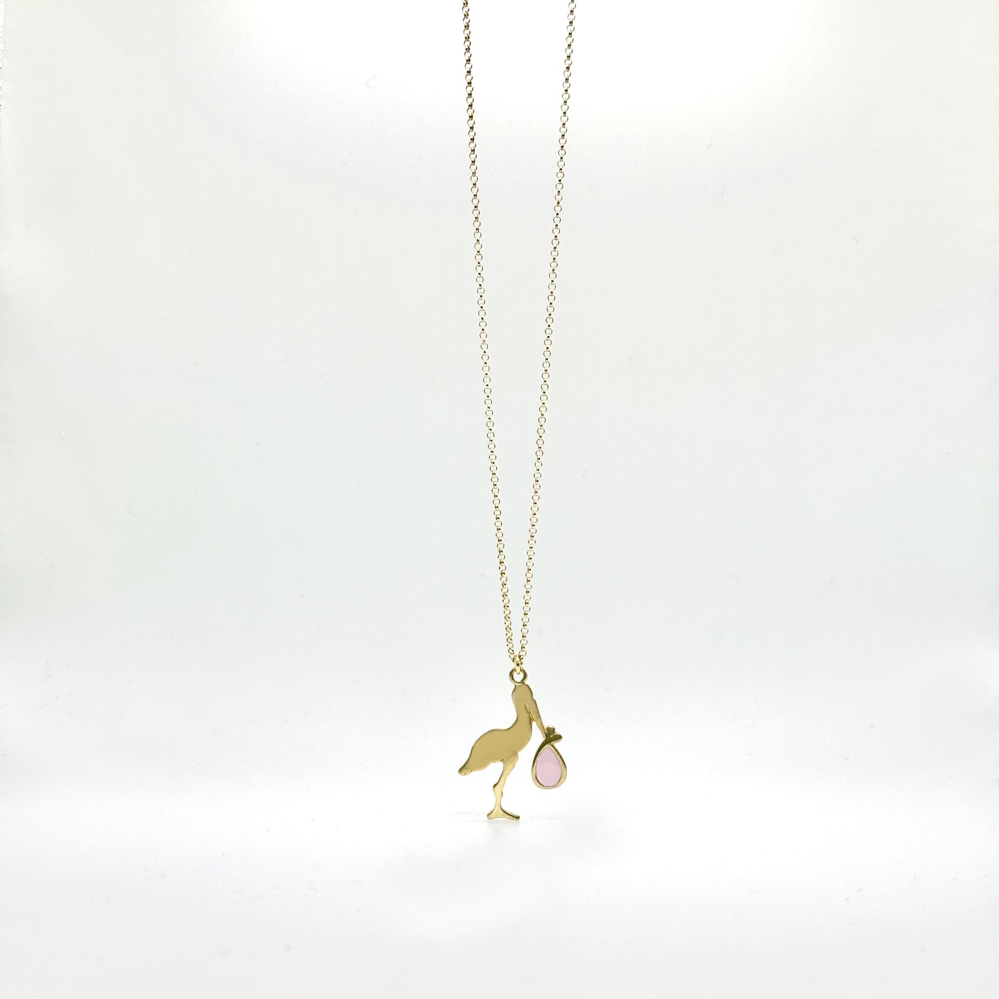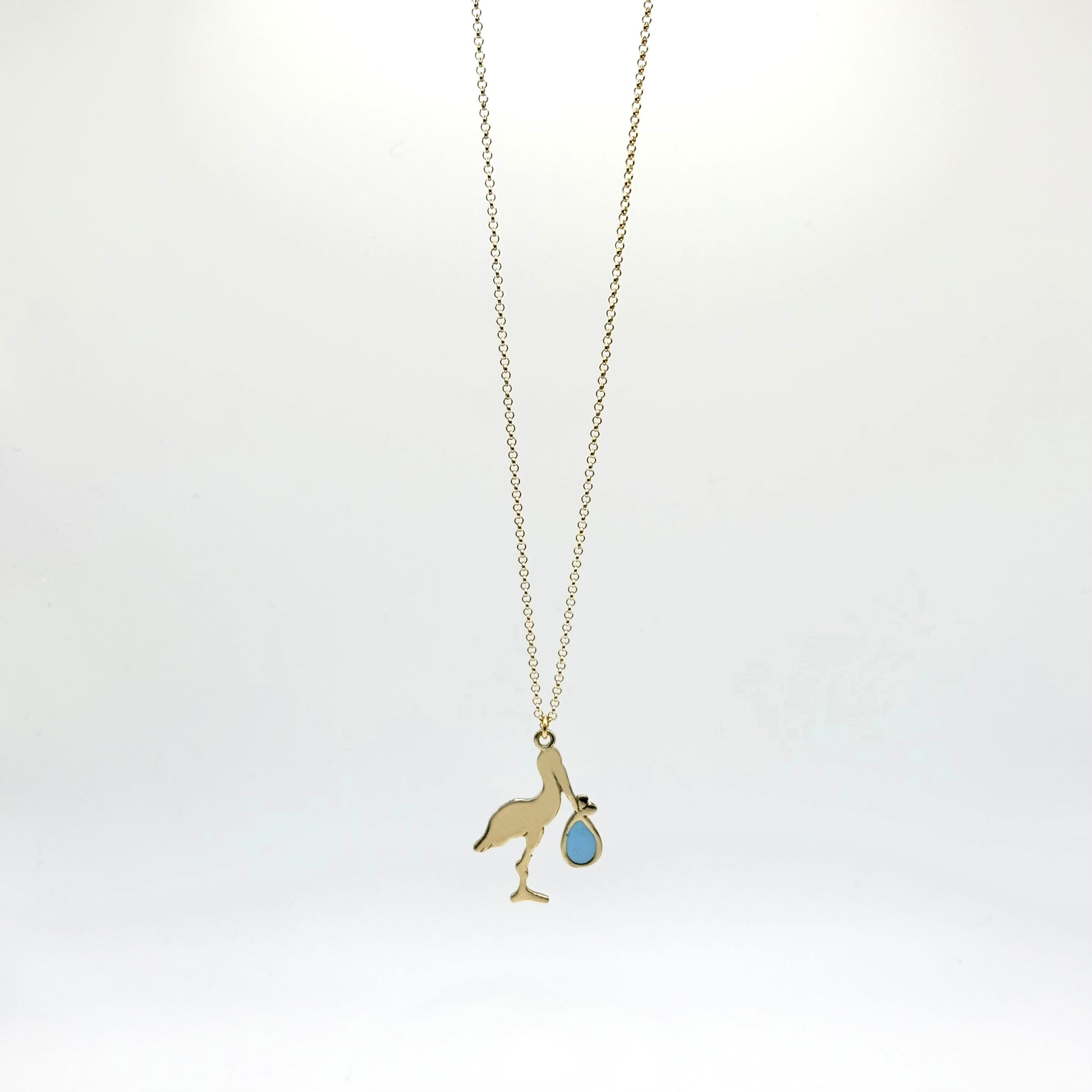 Collana in bronzo, con un ciondolo a forma di cicogna disponibile nelle versioni smaltate in celeste o in rosa. Il design raffinato e simbolico della cicogna rende questo gioiello un accessorio perfetto per celebrare momenti speciali o aggiungere un tocco di dolcezza al tuo look quotidiano.